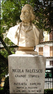 Come accennato nell’introduzione, nel cuore di Palermo, all’interno del Giardino Garibaldi in Piazza Marina, si erge un busto dello scultore M. Wagner dedicato a Nicolae Bălcescu. Il monumento vi fu sistemato nel 1961 a cura dell’Accademia della Repubblica popolare romena in occasione dell’anniversario dell’Unità dei Principati Romeni e delle celebrazioni del primo centenario dell’Unità d’Italia e si presenta come un busto classico, collocato su un basamento recante la seguente iscrizione: